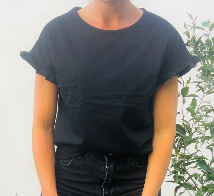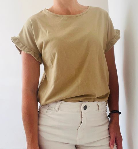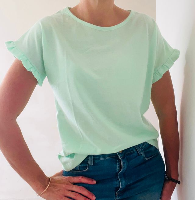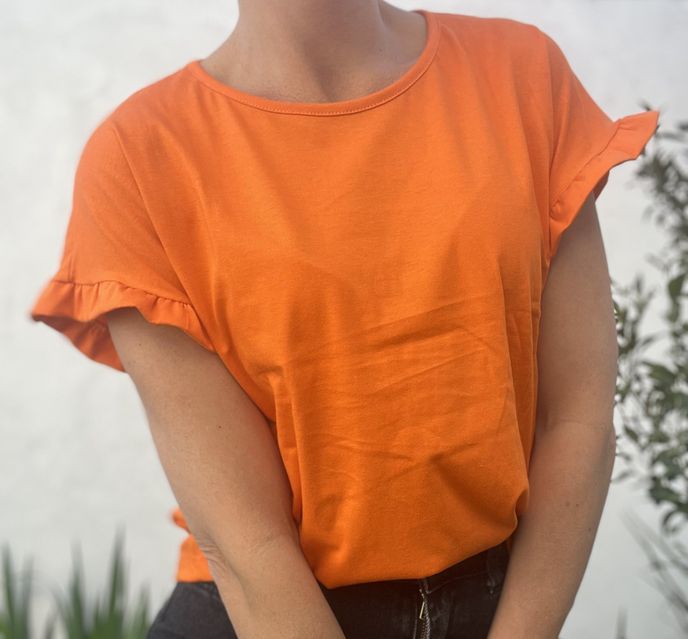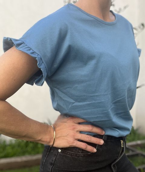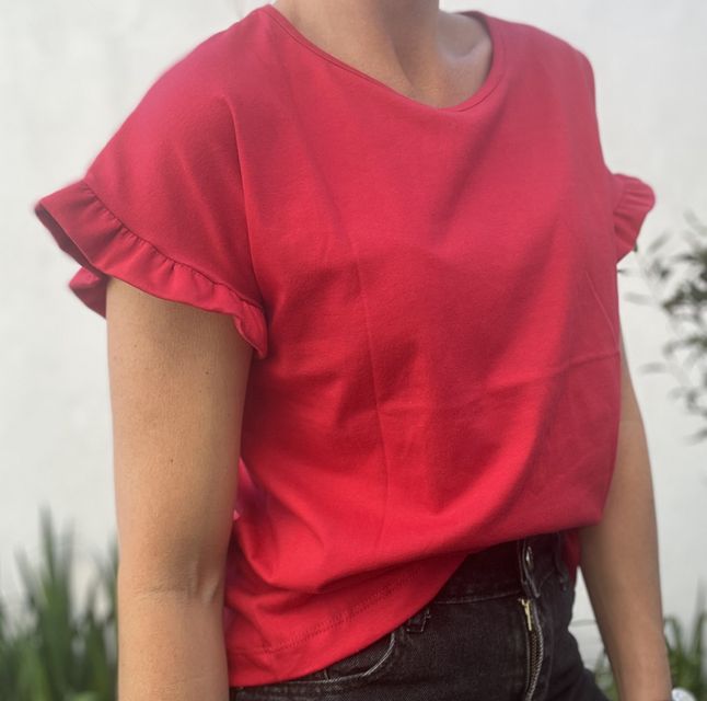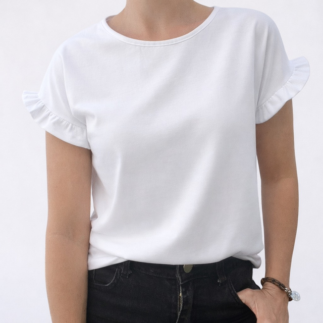 Remera de algodón cuello redondo manga con volado Ver más detalles