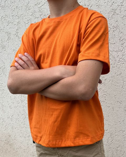 Remera de jersey de algodón peinado cuello redondo mangas cortas de niño.