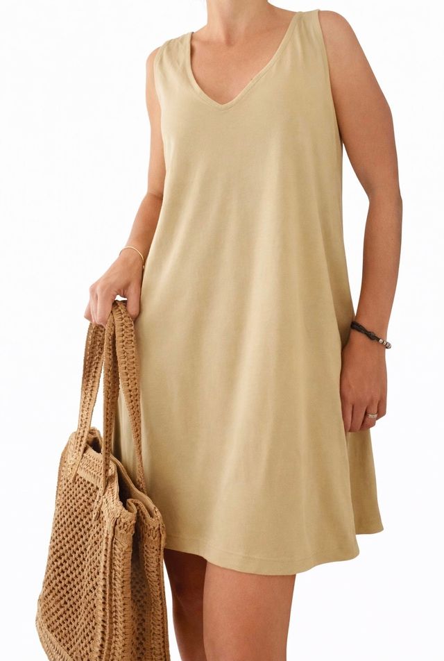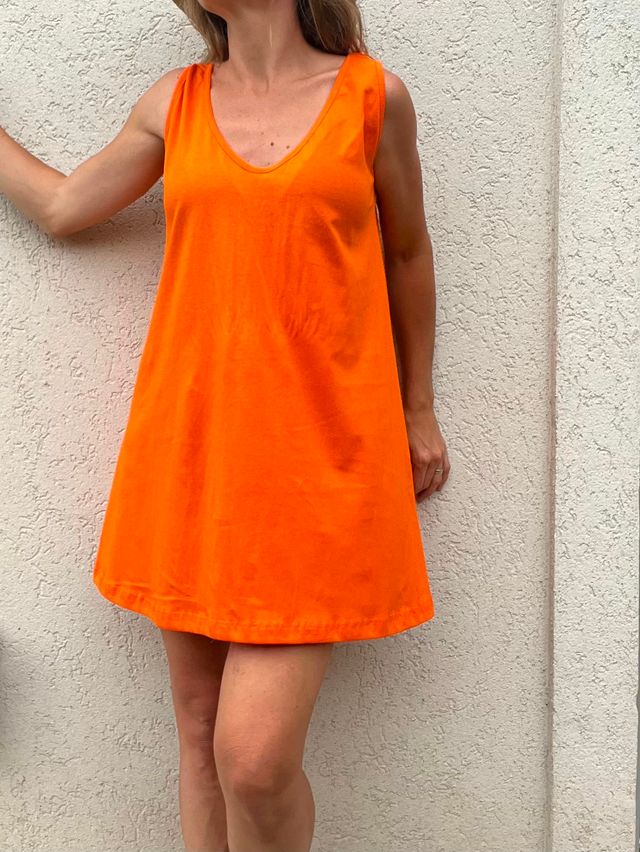 Vestido de jersey de algodón peinado sin mangas de mujer escote reversible: podes usarlo de ambos lados (escote V o redondo).